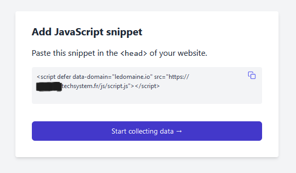 Pour finaliser l’installation, il faudra ensuite intégrer le script de suivi (tracker) à votre CMS (WordPress, Ghost, etc.).